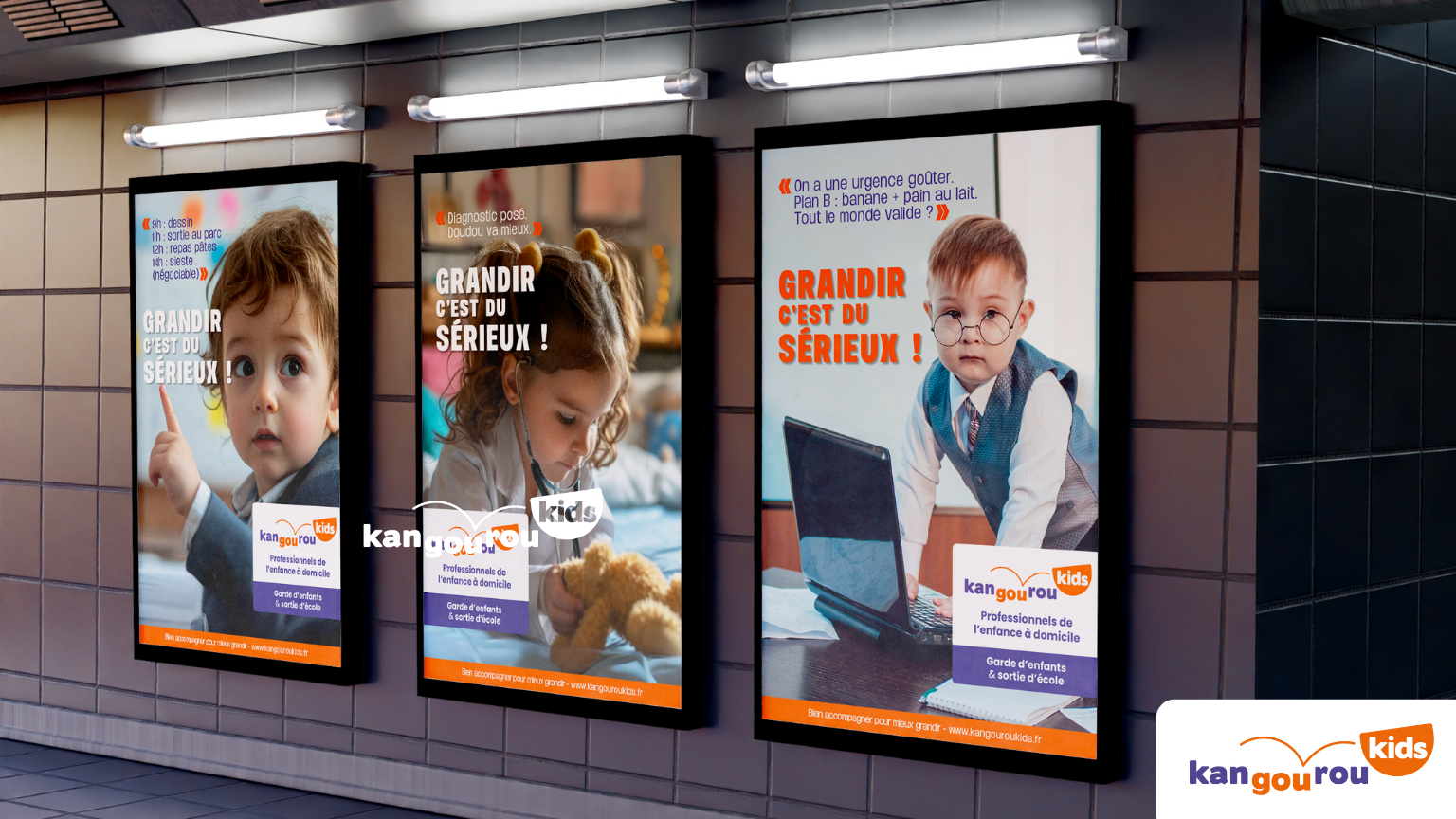 Résultat : un message impactant, drôle et mémorisable, qui réaffirme le rôle d’accompagnant de Kangourou Kids.